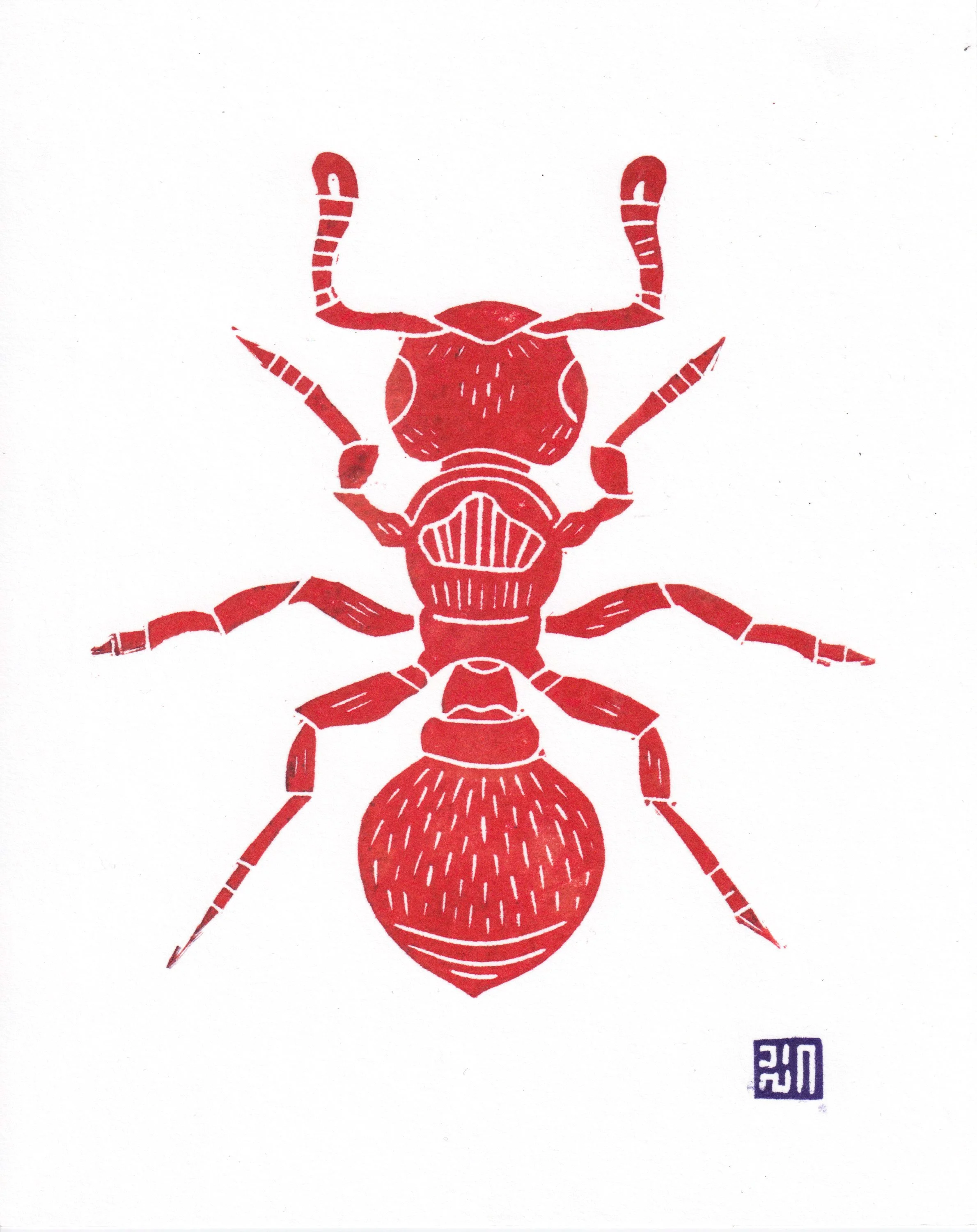 In these prints, the linocut defines the insect’s presence, while watercolor evokes the air, the vibration, and the atmosphere that surrounds it.
